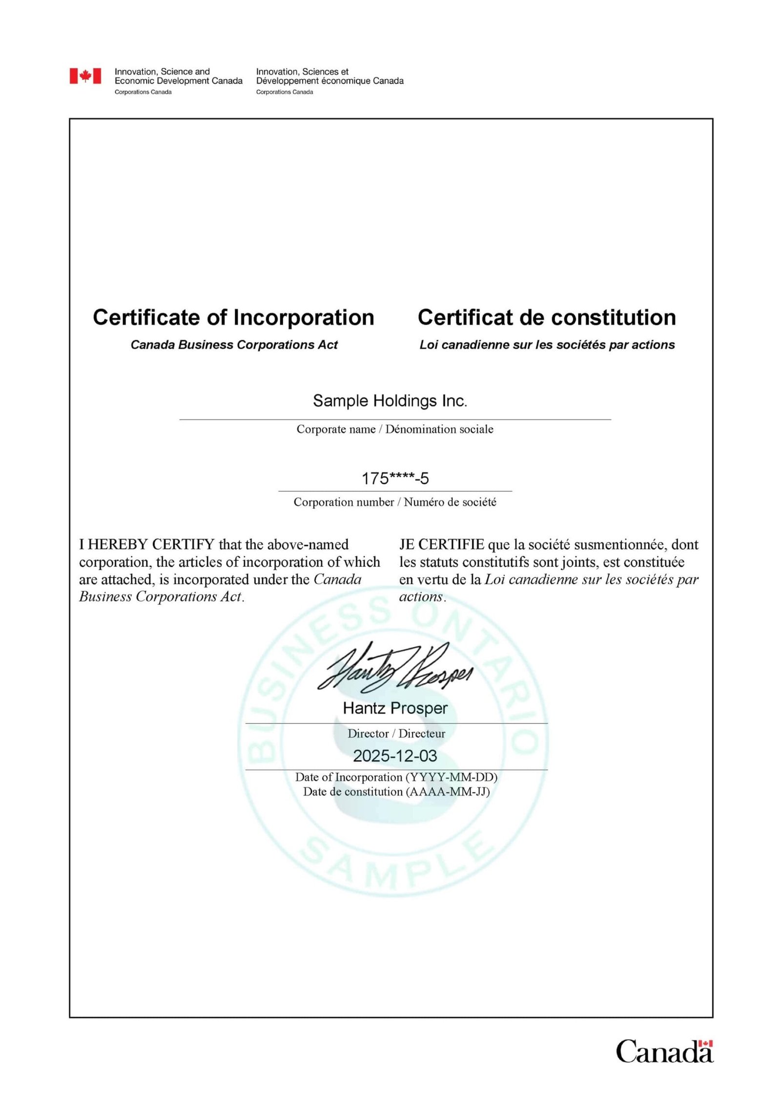 A Federal Incorporation is a business registered under the Canada Business Corporations Act (CBCA). It allows your corporation to operate across all provinces and territories under one federally protected business name.