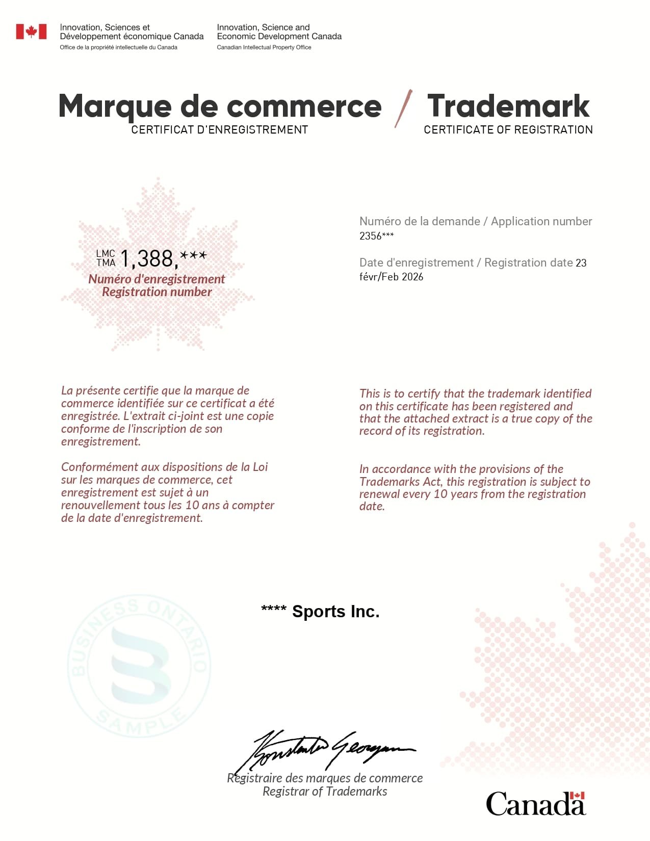 Ontario Business — Sample Documents